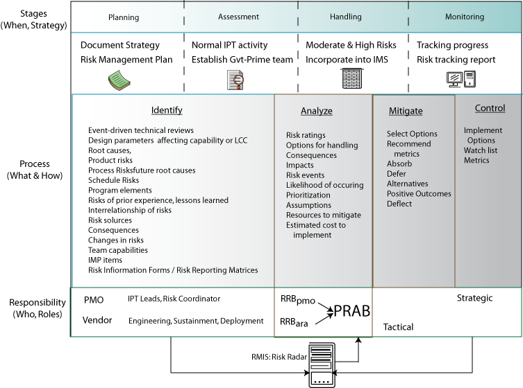 The ConvergeITS risk methodology is a best-value cost approach which includes four (4) major focus areas in the development of a risk management plan (RMP). This includes: (1) Definitions, (2) Risk Management Strategy and Approach, (3) Organizational Responsibilities, and (4) Risk Management Process and Procedures. There are four (4) overarching strategic functions in the ConvergeITS risk management methodology: (1) Risk Planning, (2) Risk Analysis/Assessment, (3) Risk Handling, and (4) Risk Monitoring, as well as the requirements for a Risk Management Information System (RMIS).The ConvergeITS risk management strategy is designed to ensure the government and contractor teams identify both technical and non-technical critical areas and risk events. Our approach is to align an organization for continuously identifying and measuring the unknowns; developing mitigation options; selecting, planning, and implementing appropriate risk mitigations; and tracking the implementation to ensure successful risk reduction.